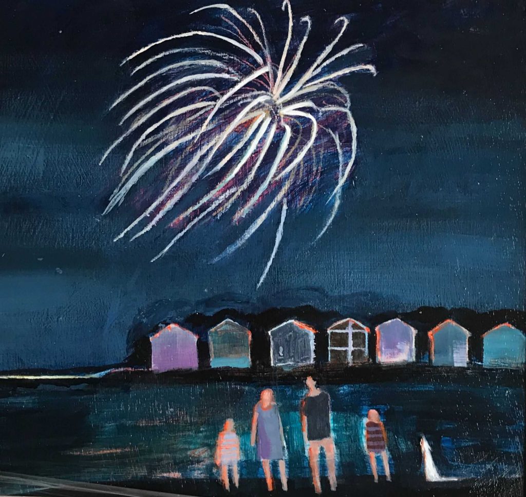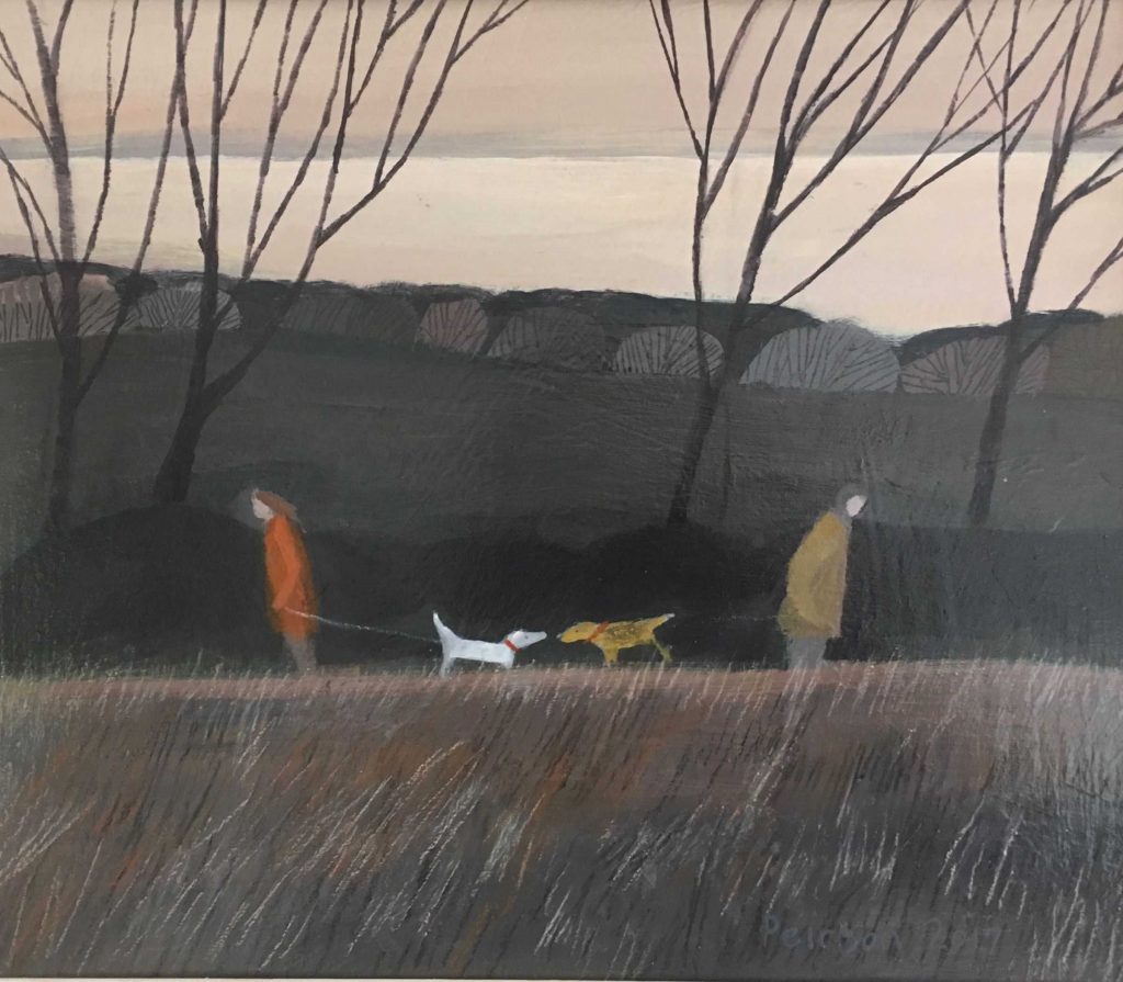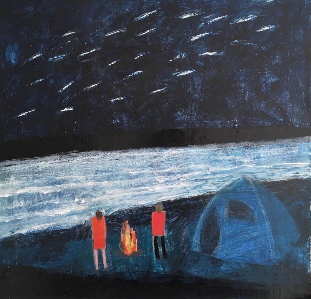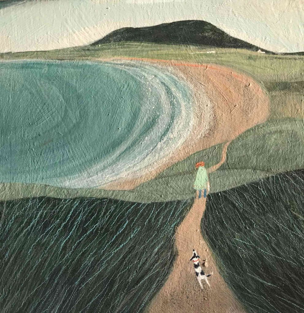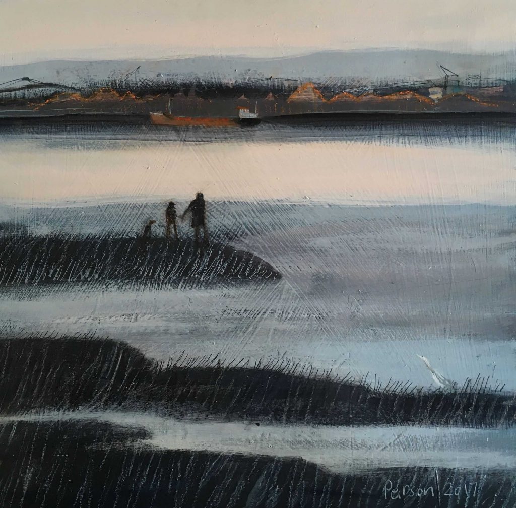 The first thing I do when I wake up is squeeze some paint onto a palette so that I’m ready to begin painting before there is any time for thoughts to interfere, attempting to make the most of the liminal state between sleep and wake where the subconscious is still within reach. Every day I walk out to the coastal marshes where I live, so the mud flats, water meadows, big skies and sea are usually a starting point for a painting. Out of the process of painting a sense of narrative emerges. I aim to capture the feeling of being in the landscape, or the fleeting moments between people there, something elusive, that can’t quite be pinned down, understood or put into words but that nevertheless evokes a recognition in the viewer of a shared human experience.