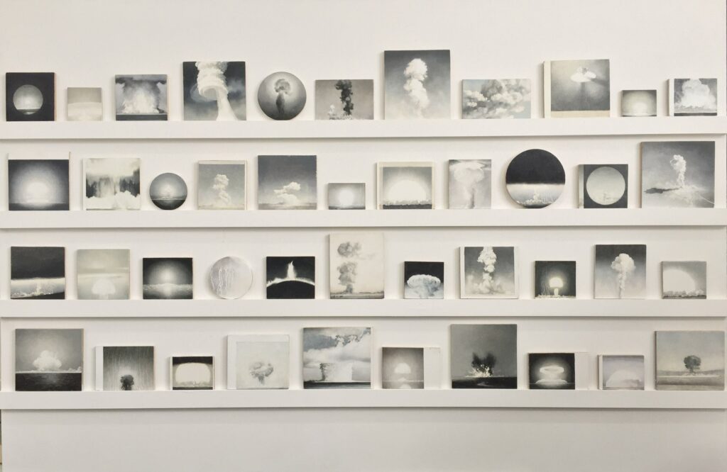 I paint bombs & reduce them to miniatures small enough to fit in a pocket, selfies that don’t show my face, sinister crime scenes filled with light.
