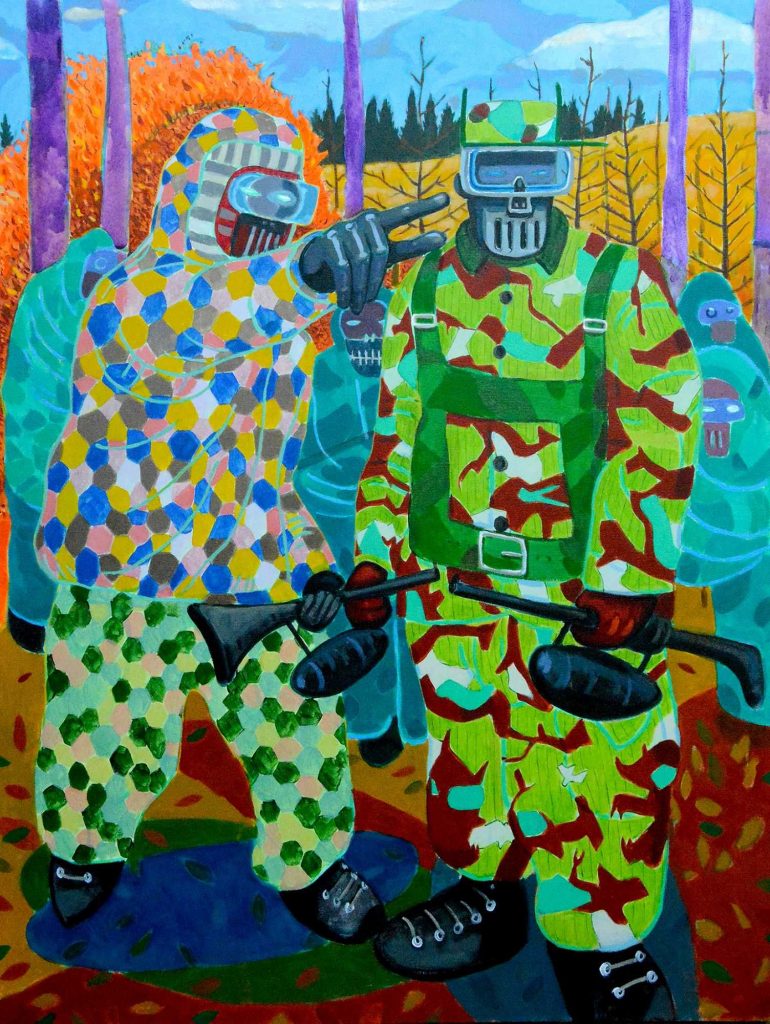 Gideon Pain’s art derives from a delight in the world around, a play on the mundane and every day that we slip through on our way to somewhere else. It is about collective moments, some tragic some euphoric, when the sharing of an experience gives significance to something unnoticed. These quiet revelations bind nurture and reassure us in a world that quickly passes. Paint, in a digital age is a slow inaccurate and clumsy medium, making it perfect for capturing and re-contextualising this fragile transience