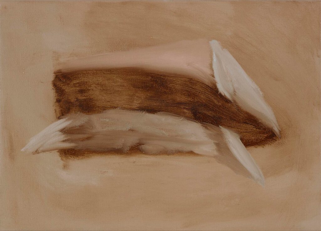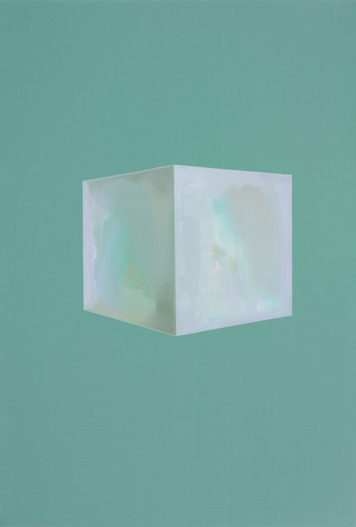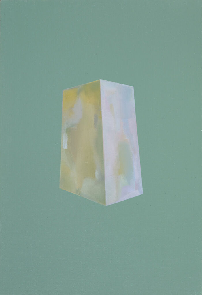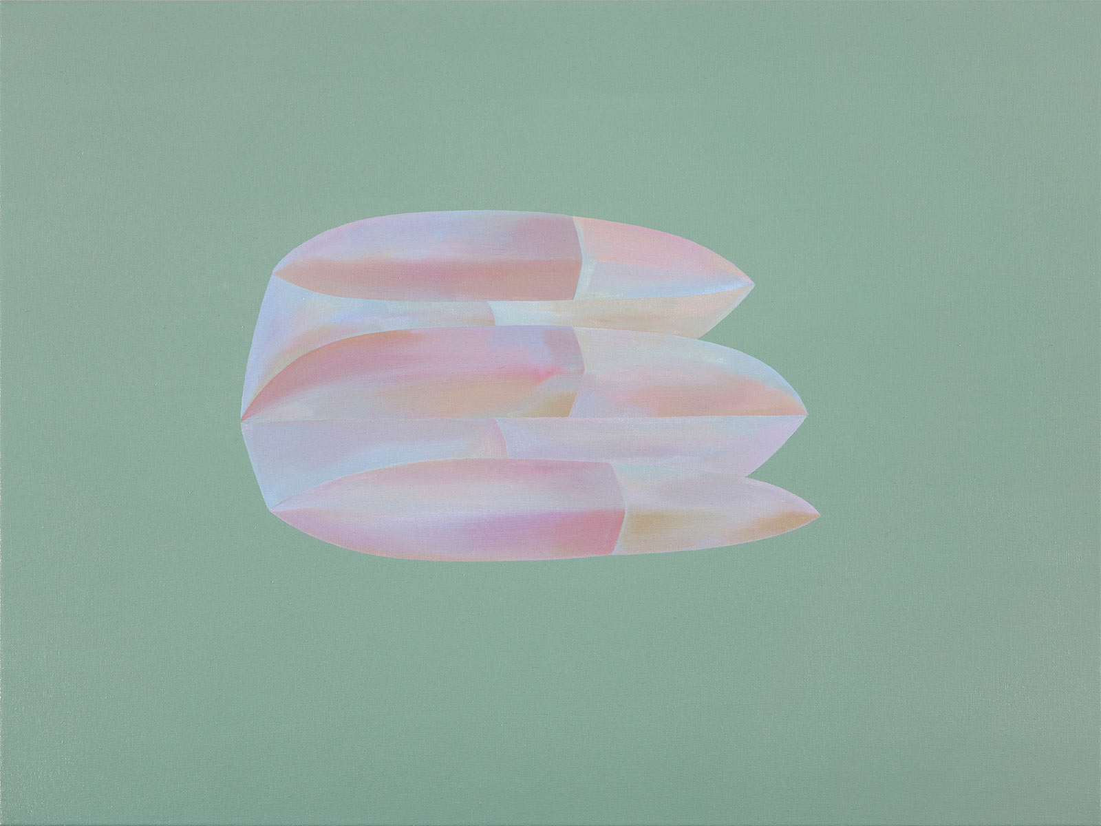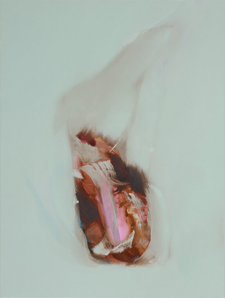 Emerging from a process of close making and the complex relationship between two active ‘objects of being’, my paintings embody the potential for visual and psychological oscillation. The exchange between painter and painting arrives at curious and insubstantial ‘part-objects or creatures’ and atmospheric spatial-fields, where ‘thingly’ qualities operate simultaneously on and in the surface. ‘Colour-auras’ and ‘sense-auras’ shape the trajectory of each painting, pursued through a preconscious reverie where decisions made in the process navigate tensions between edge, surface and gesture. The paintings negotiate the complexity of unfolding and never-ending time, registered in their ‘being-ness’ and facture, and in their call for a meditative ‘attunement’ in the process of making and looking.