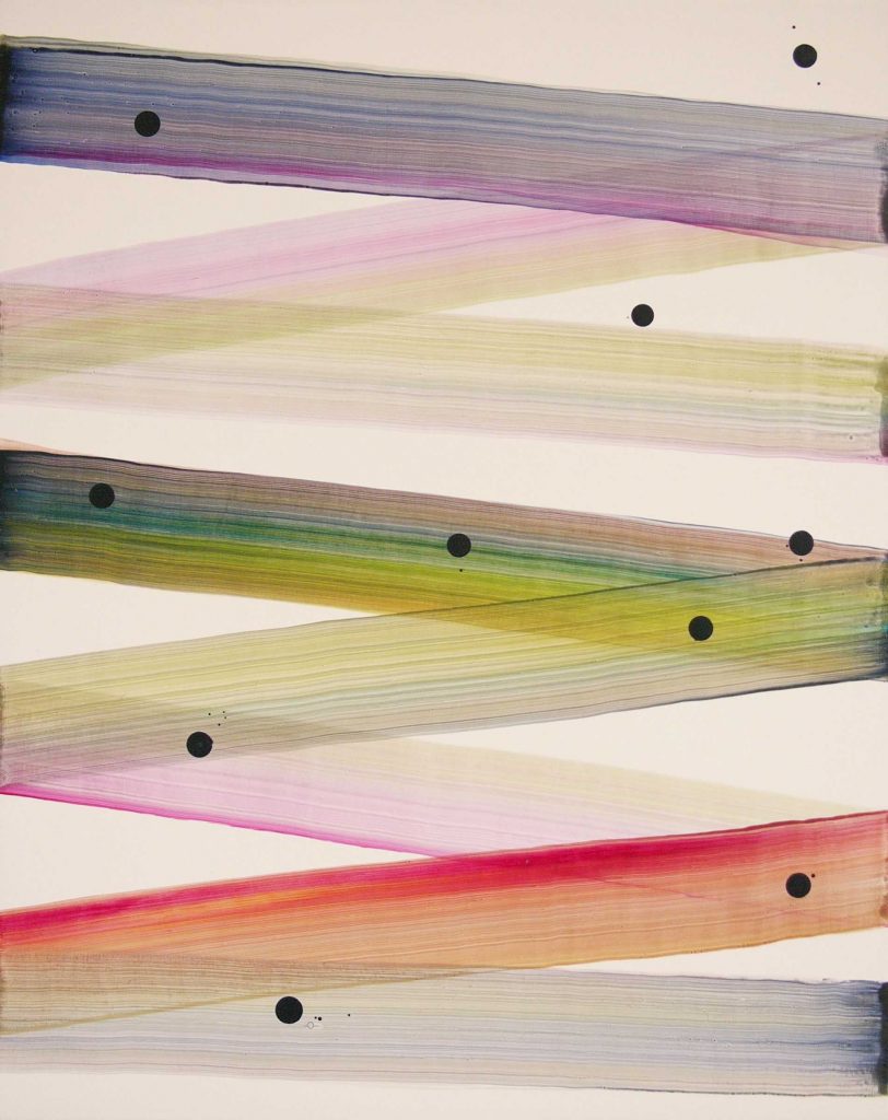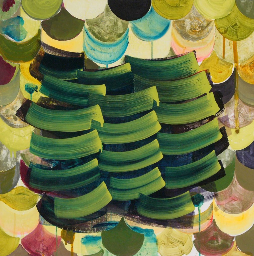 I try to explore this ‘clunkiness’ with tactile images that sit somewhere between order and chaos, structure and collapse, expression and control. While the underpinning of the process is held together by predetermined structures, the freewheeling application is purposely engaging and ambivalent to the expressive urge to dictate the paintings.