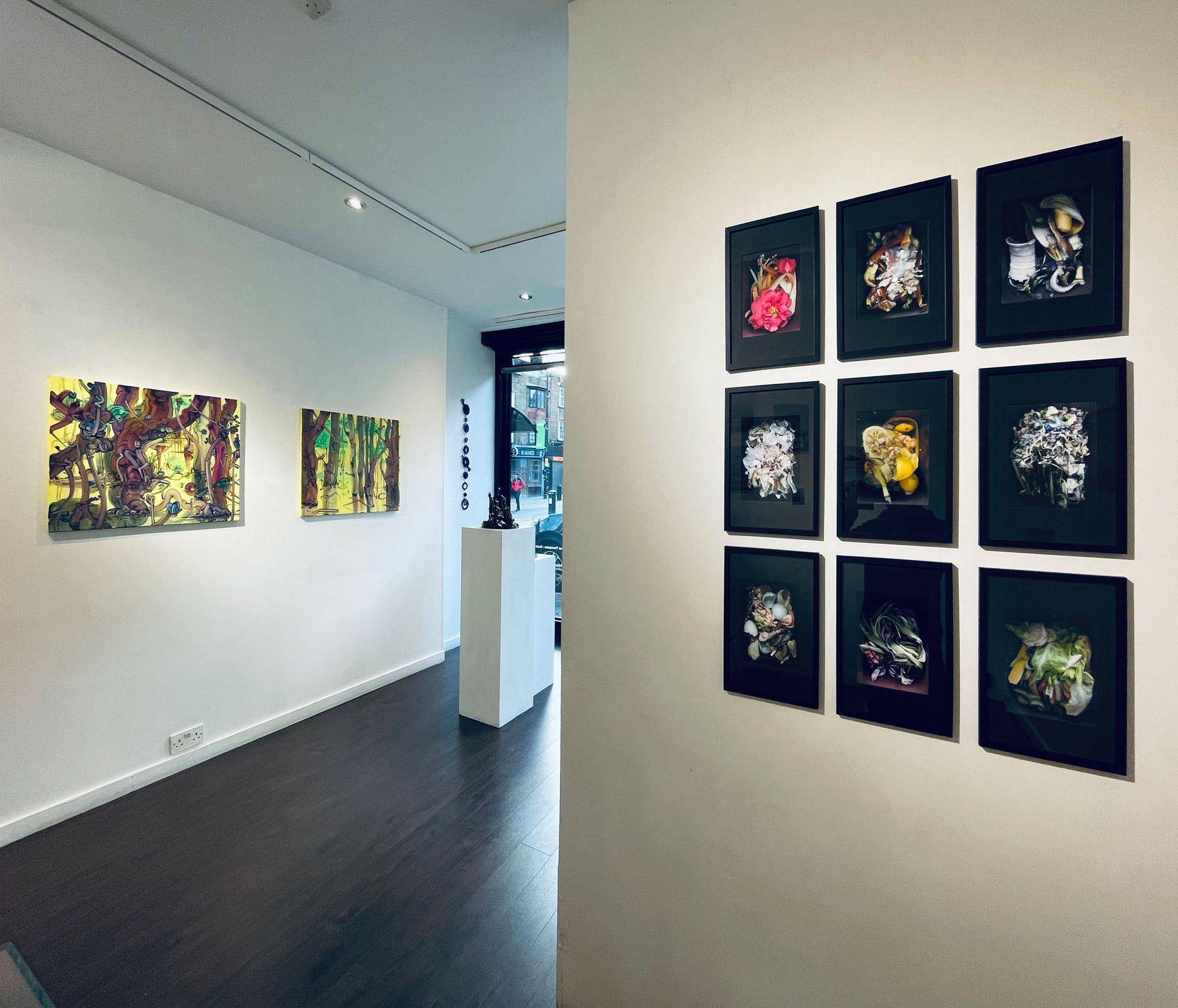 A series of editioned prints of her kitchen compost begun during lockdown track food and flowers passing through the home, referencing historical still life painting.