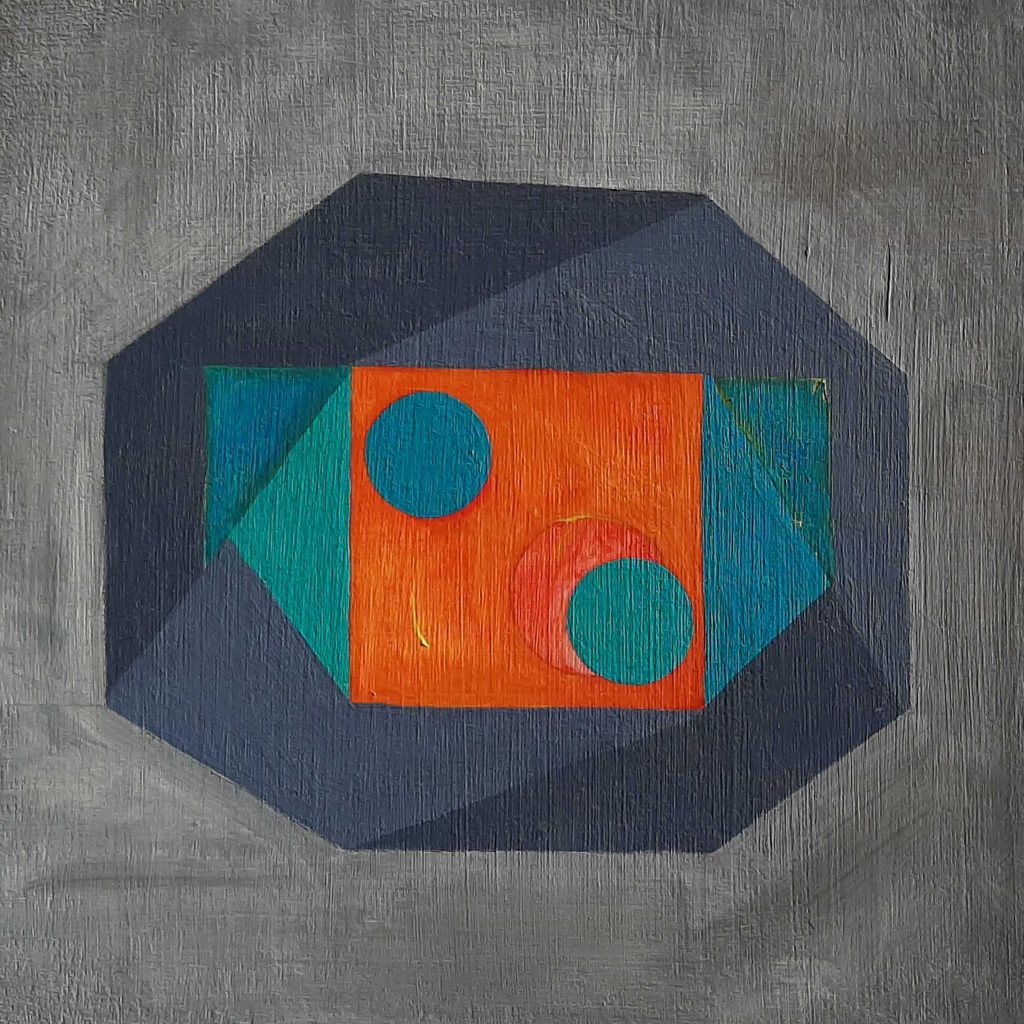 My practice focuses primarily on spatial ambiguity, an interest that I have been engaging with for some time, to construct abstract paintings which toy with interpretation and perception. I am fascinated by relationships between three-dimensional and two dimensional space, colour and rhythm, and figure and ground; as a result, forms, often mined from a variety of sources, including architecture and sculpture, are transformed and distorted. With these principles in mind, I aim to create art that distils both intrigue and visual pleasure.