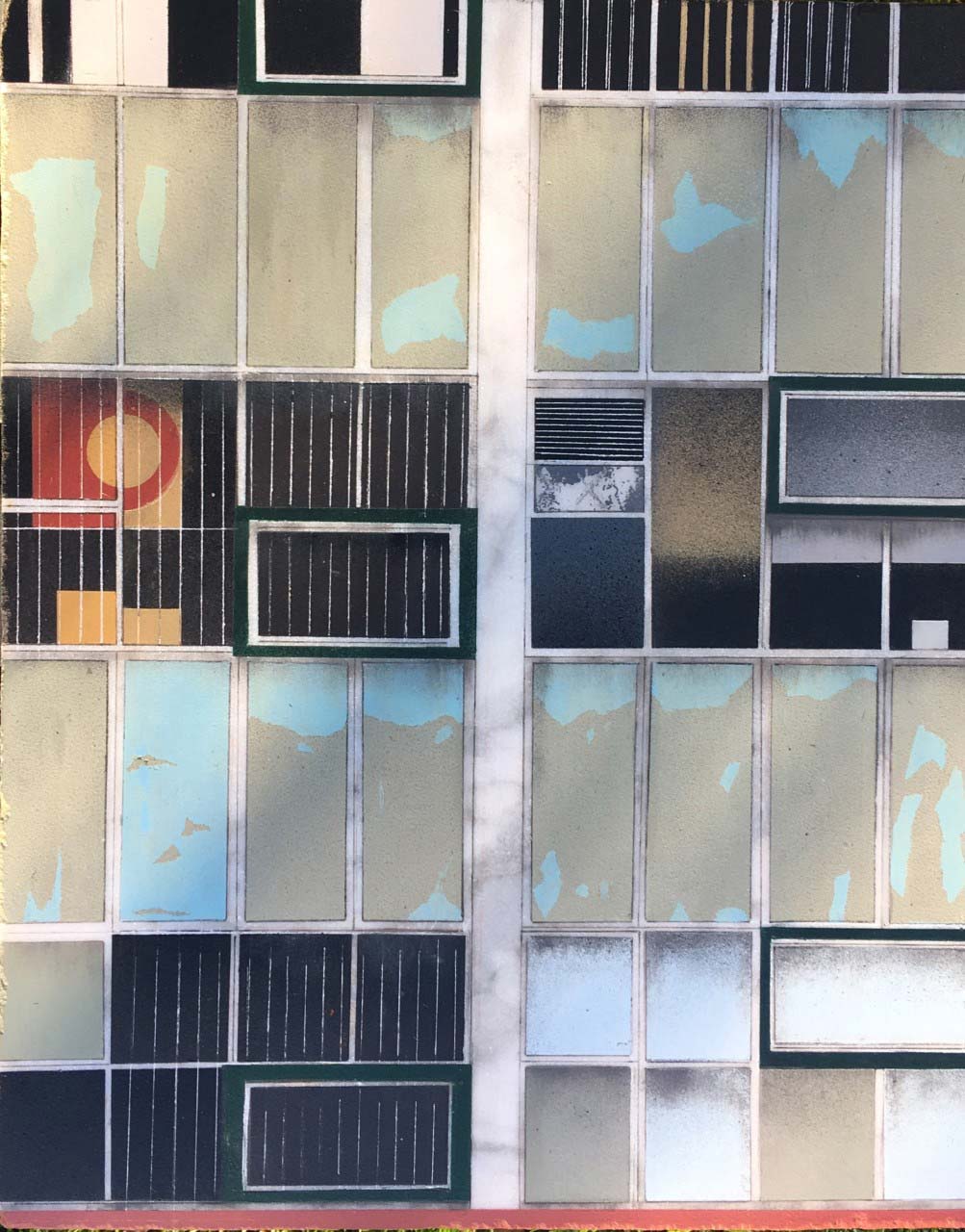 Mandy Payne: Yes, I think there is very much a notion of my paintings being documents or an archival objects. Many of the sites I explore are under threat of demolition or undergoing irrevocable change by gentrification. I hope these works might serve as a record of how things were before they were lost. I also prefer if I can, not to frame my paintings which makes them more ‘object like’ and also emphasises their structural /surface qualities. The haptic quality of paint, materiality and facture are really important to me, which is why I try to use materials that have a direct connection to the sites I depict.