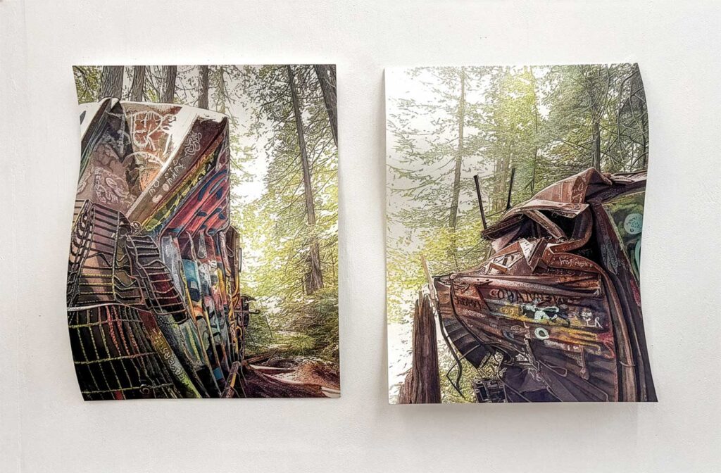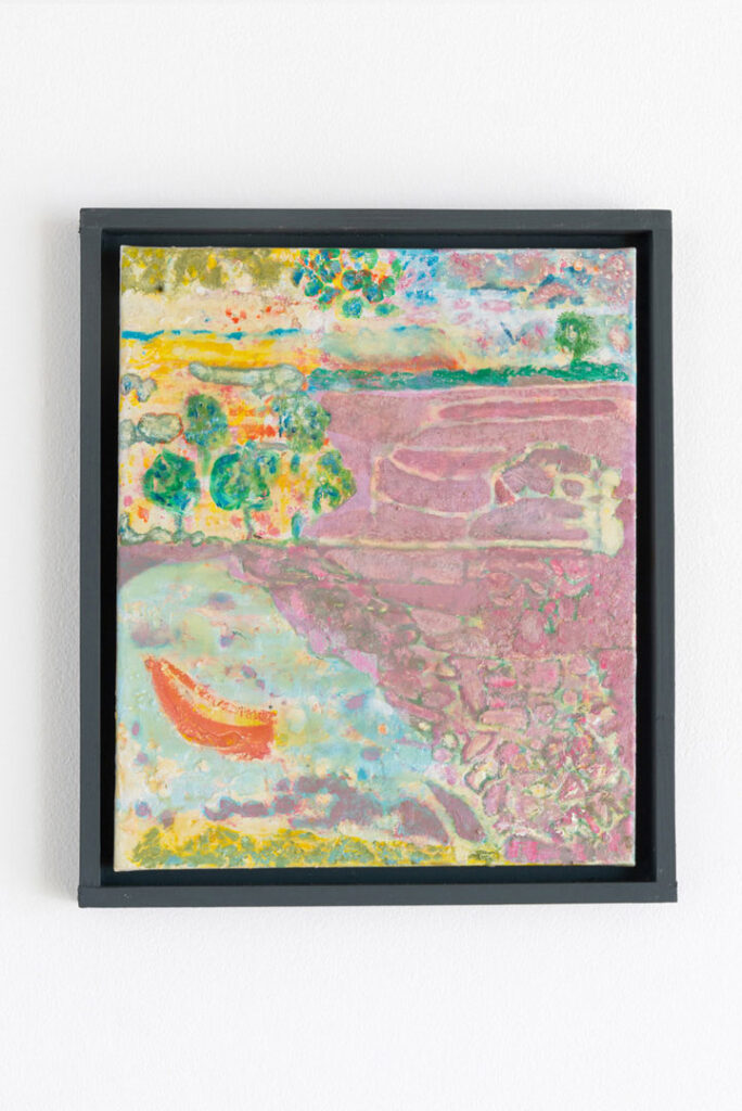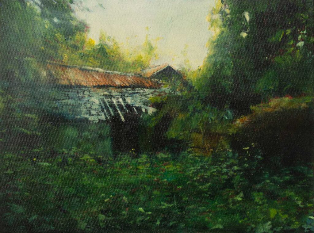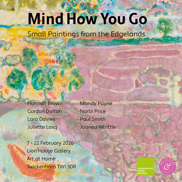 This exhibition gathers together eight painters whose work has a distinctive take on looking at landscape. From the raw concrete of modern living and the Victorian terrace to the scrappy spaces around cities and towns where human presence is entangled with nature. In the edgelands trees and plants push through post-industrial ruins, follies and temporary dwellings draw attention in passing, unofficial paths of public desire run through scrub and bramble. At the coast the retreating cliff leads down to the beach with its specks of sea-coal, sea smooth brick and out to the high horizon.