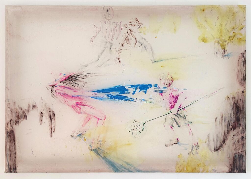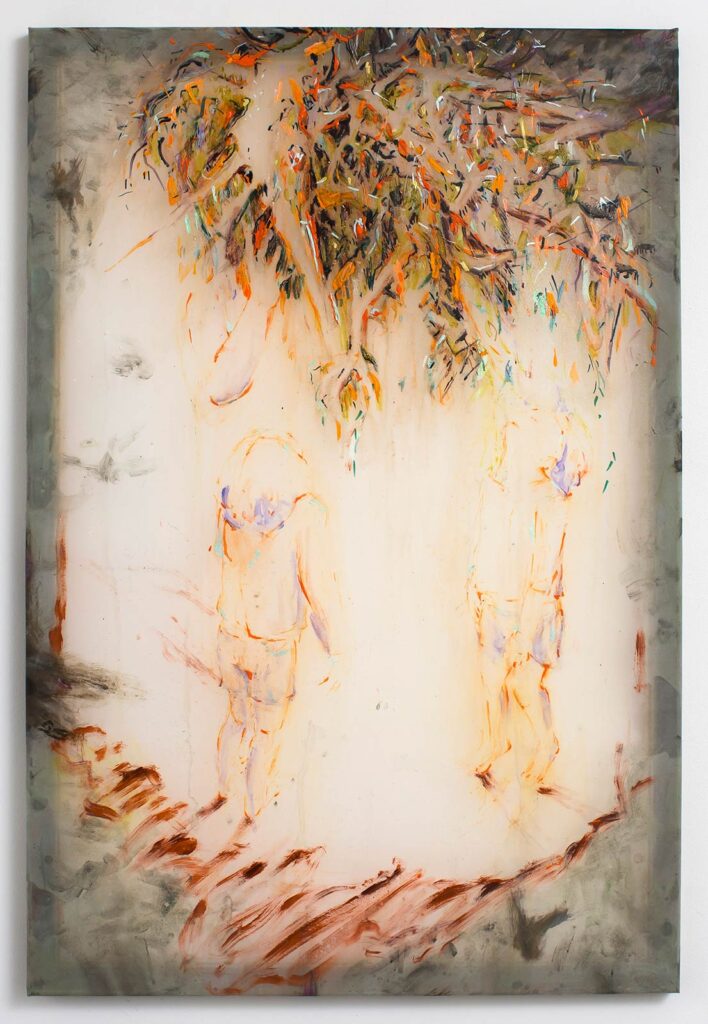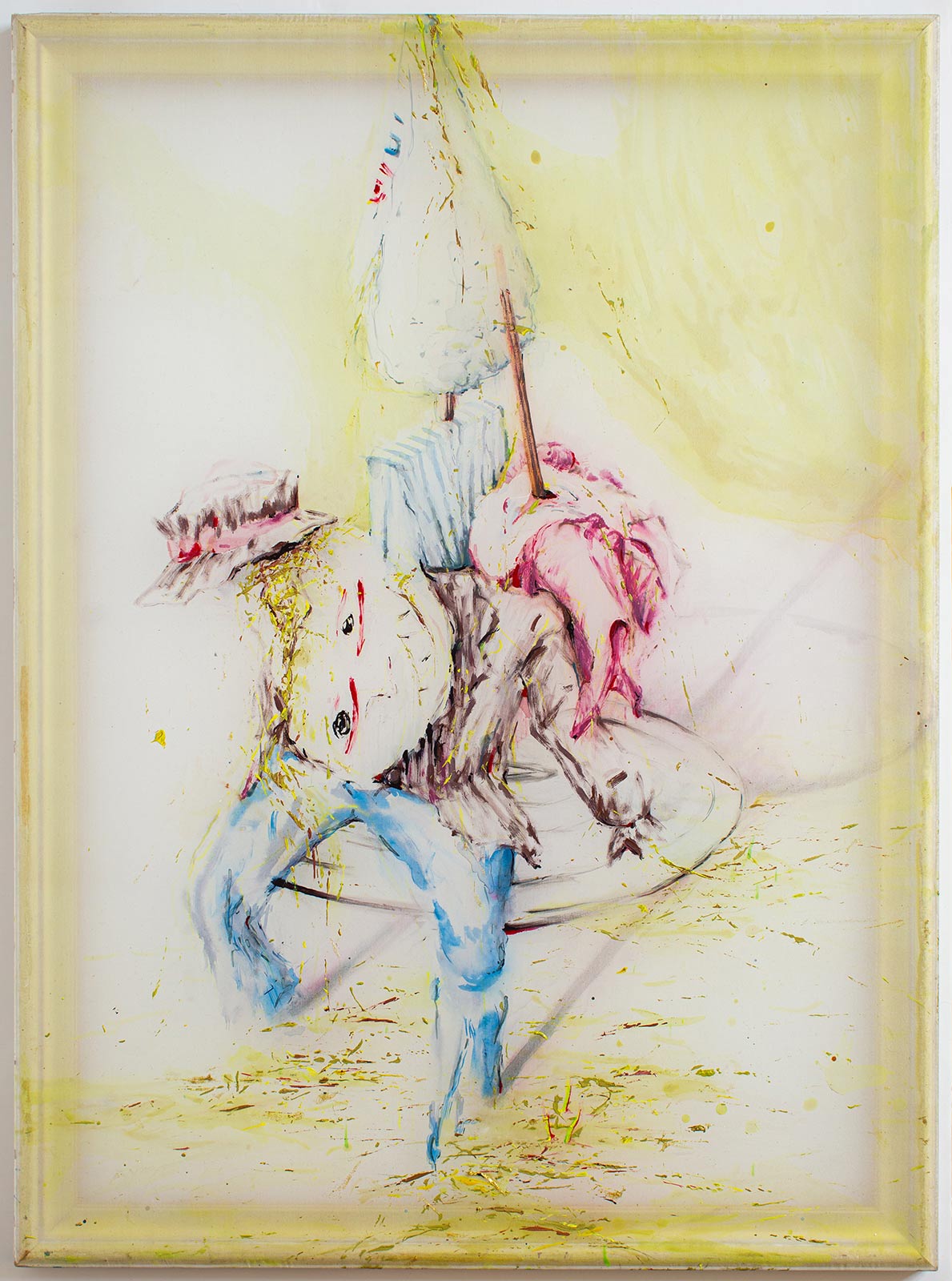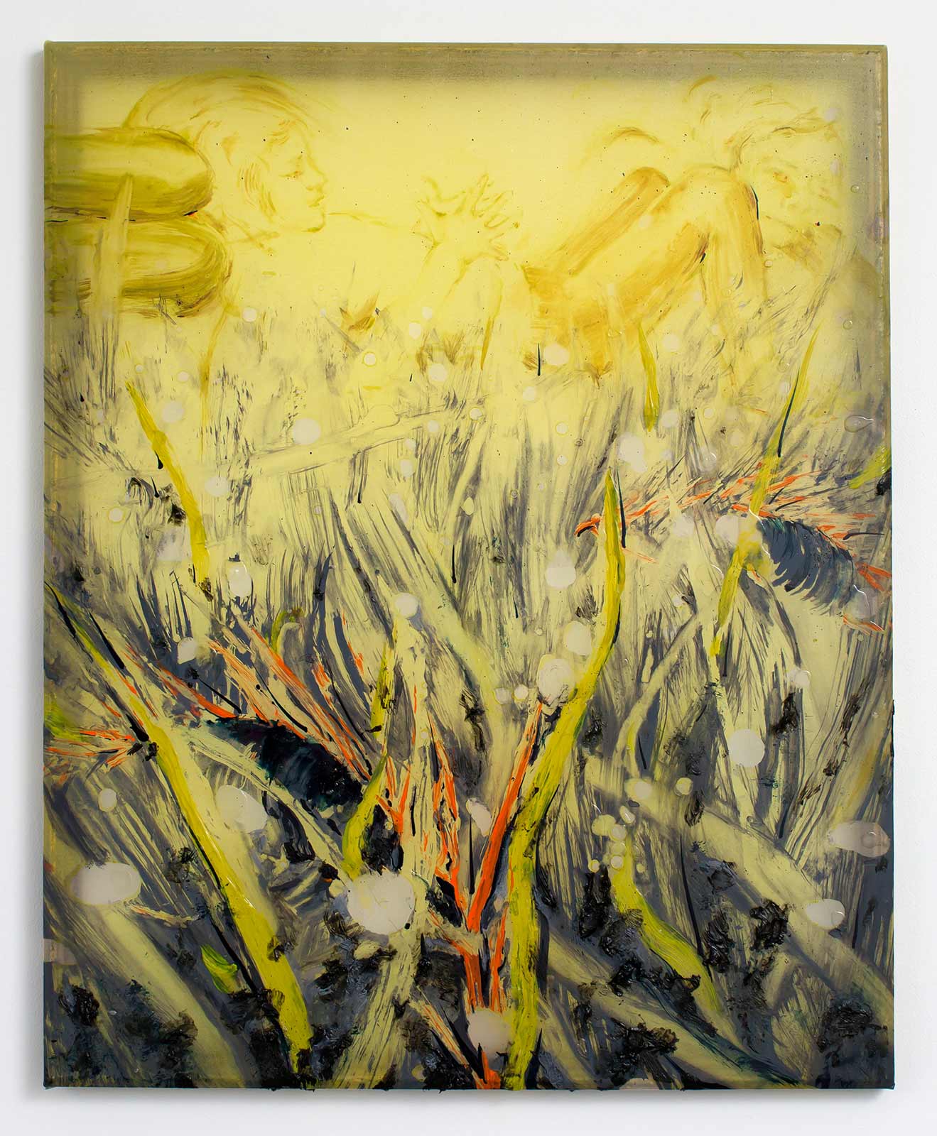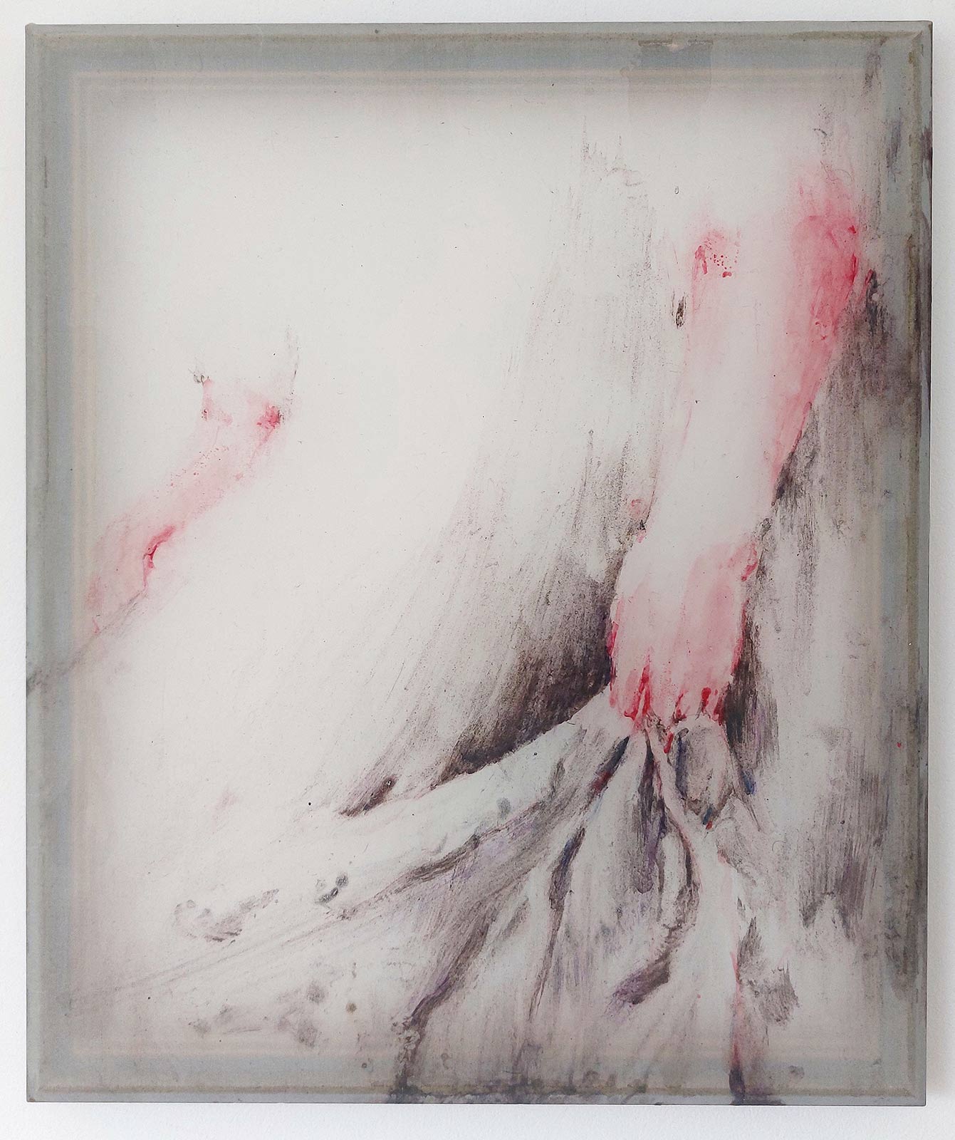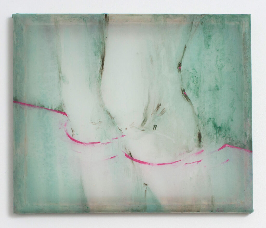 I make autobiographical paintings exploring intimate family moments around motherhood, family, death, and a shifting sense of self. They often flicker between love and loss, play and conflict. I use these fluctuations to move from the familiar into something strange and more uncertain. Figures are loosely formed and fragmented, leaving them open and susceptible to change. I paint on silk for its ghost like and ephemeral qualities. They are stretched over an eclectic mix of small scale, reclaimed frames, which act as a familiar domestic prop upon which a tender and unnerving other world emerges.